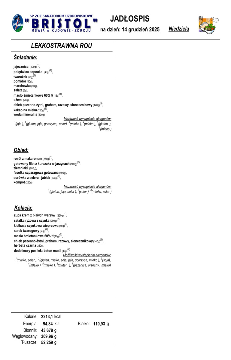 Uprzejmie informujemy, że od dnia 1 listopada 2023 r. SP ZOZ Sanatorium Uzdrowiskowe MSWiA w Kudowie-Zdrój przystąpiło do programu pilotażowego „Dobry posiłek w szpitalach” prowadzonego Rozporządzeniem Ministra Zdrowia z dnia 25 września 2023 r.