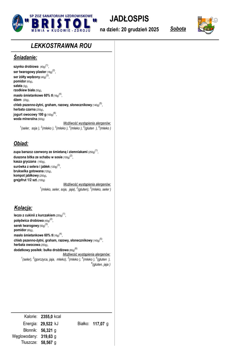 Uprzejmie informujemy, że od dnia 1 listopada 2023 r. SP ZOZ Sanatorium Uzdrowiskowe MSWiA w Kudowie-Zdrój przystąpiło do programu pilotażowego „Dobry posiłek w szpitalach” prowadzonego Rozporządzeniem Ministra Zdrowia z dnia 25 września 2023 r.