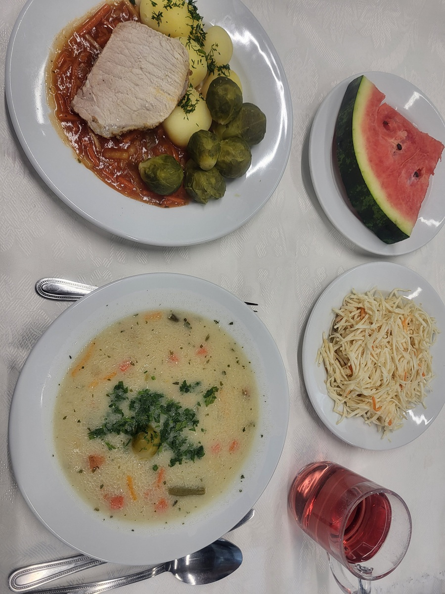 Godziny posiłków : śniadanie 9:00, Obiad 13:30, Kolacja 18:15, dodatkowy posiłek 20:00