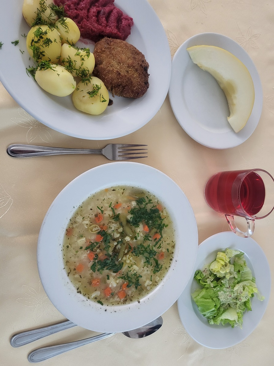 Godziny posiłków : śniadanie 9:00, Obiad 13:30, Kolacja 18:15, dodatkowy posiłek 20:00